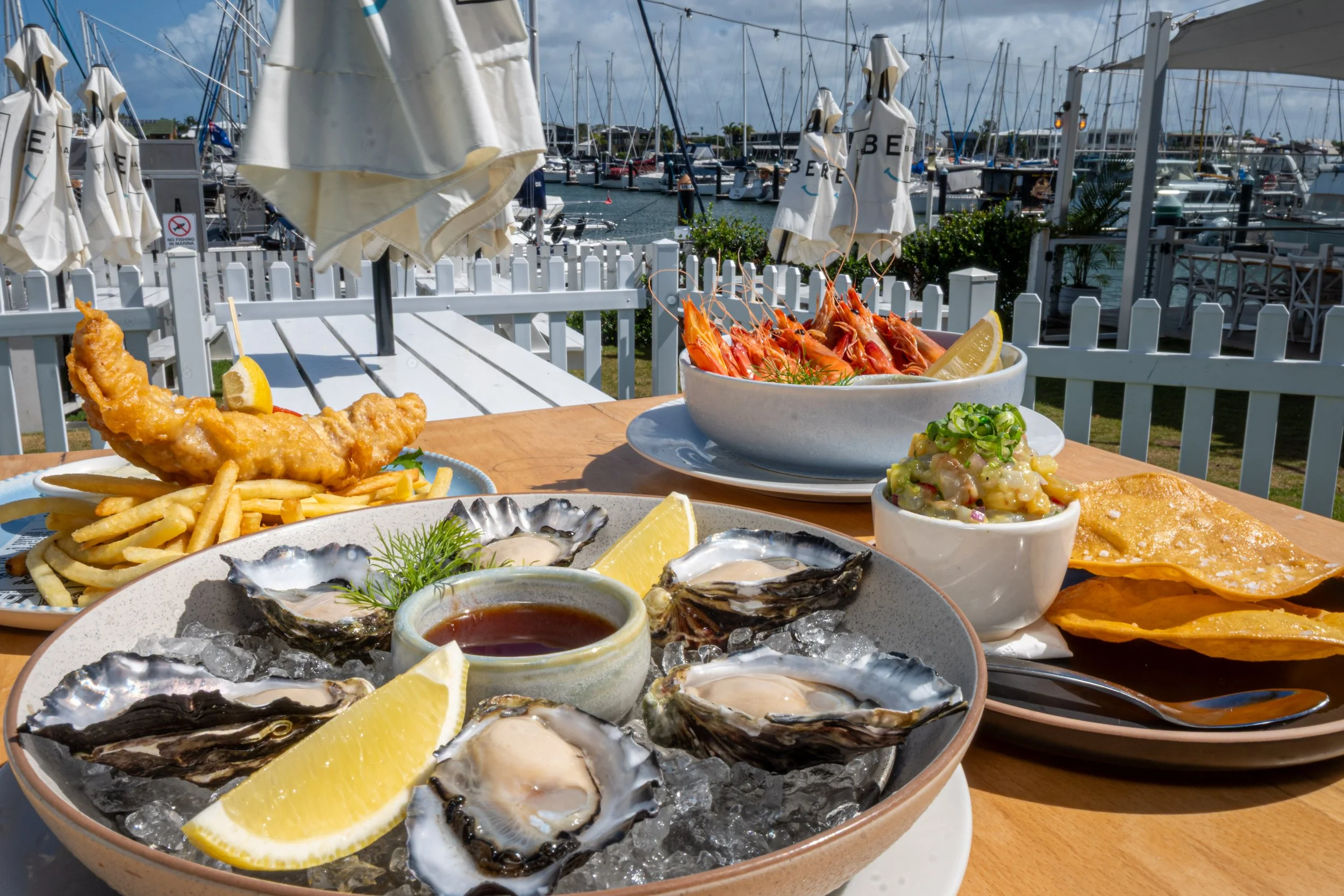 Join us on the edge of the Mooloolaba Marina, overlooking the blue sea & skies, swaying palms and bobbing boats.